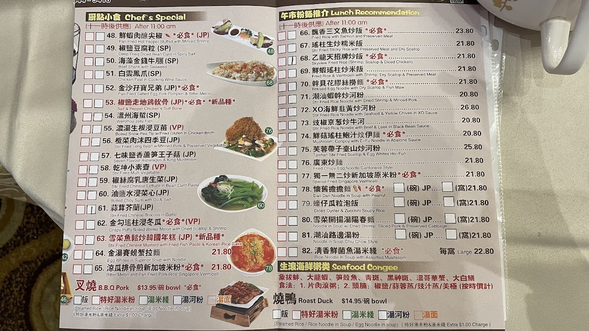 The Steamed Rice Roll 長長久久 selection includes unique offerings like Steamed BBQ Pork Rice Roll and Steamed Chicken with Black Rice Roll that will leave you craving for more. Don't miss out on the Chef's Special 廚點小食 like Bitter Melon and PanFried Pork Ribs Singapore Vermicelli and Egg White in Superior Soup with Noodle, they are truly unforgettable.